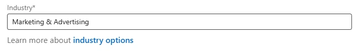 Choosing your LinkedIn industry affects how job matching is performed, what offers you receive, and how your LinkedIn account ranks in search. Therefore, if you are not completely sure what exactly to indicate, just choose the industry in which you are currently working. For example, it could be “Information Technology & Services” or “Marketing & Advertising.”