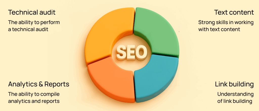 To perform their work effectively — including all of the tasks mentioned earlier — an SEO specialist must possess not only professional hard skills but also a range of communication and soft skills.